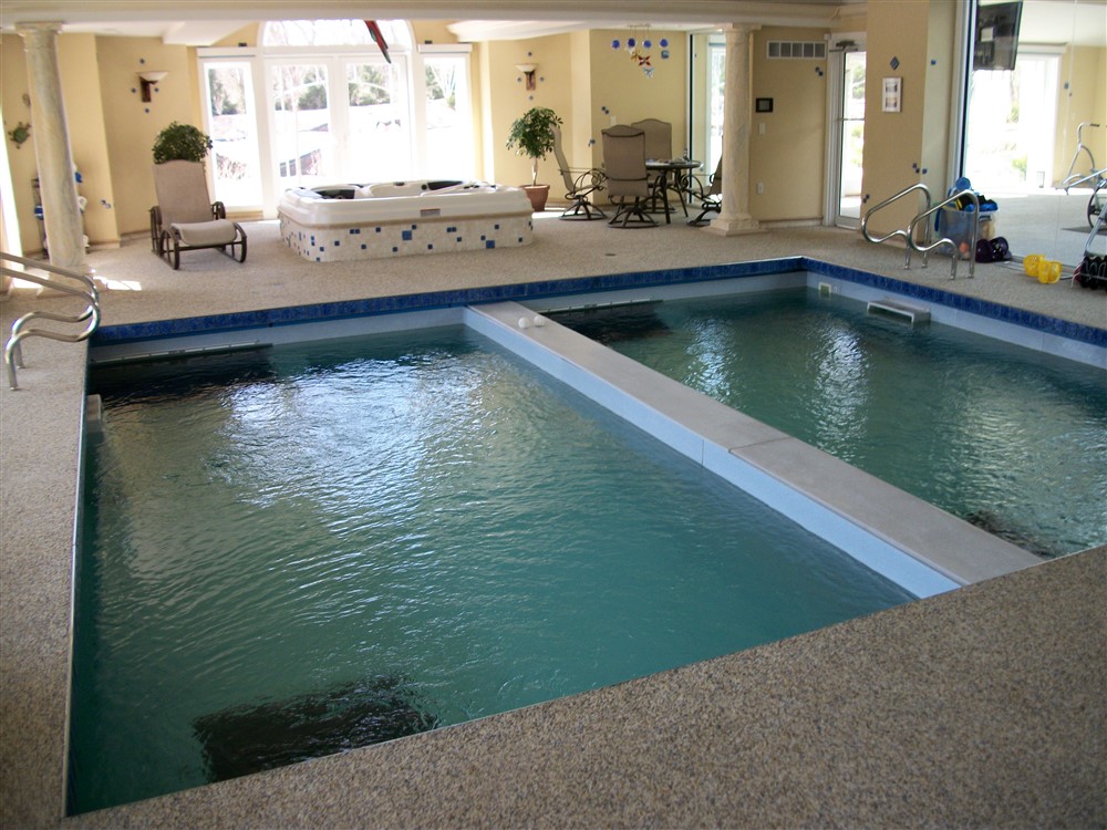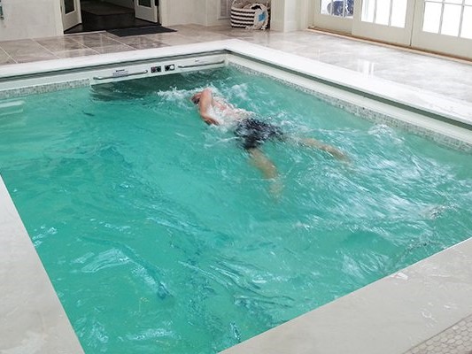 The pool comes standard with 4′, 5′, and 6′ (1.22m, 1.52m, and 1.83m) water depths, or customize the interior layout to satisfy personal preferences, workout routines, and specific family activities.